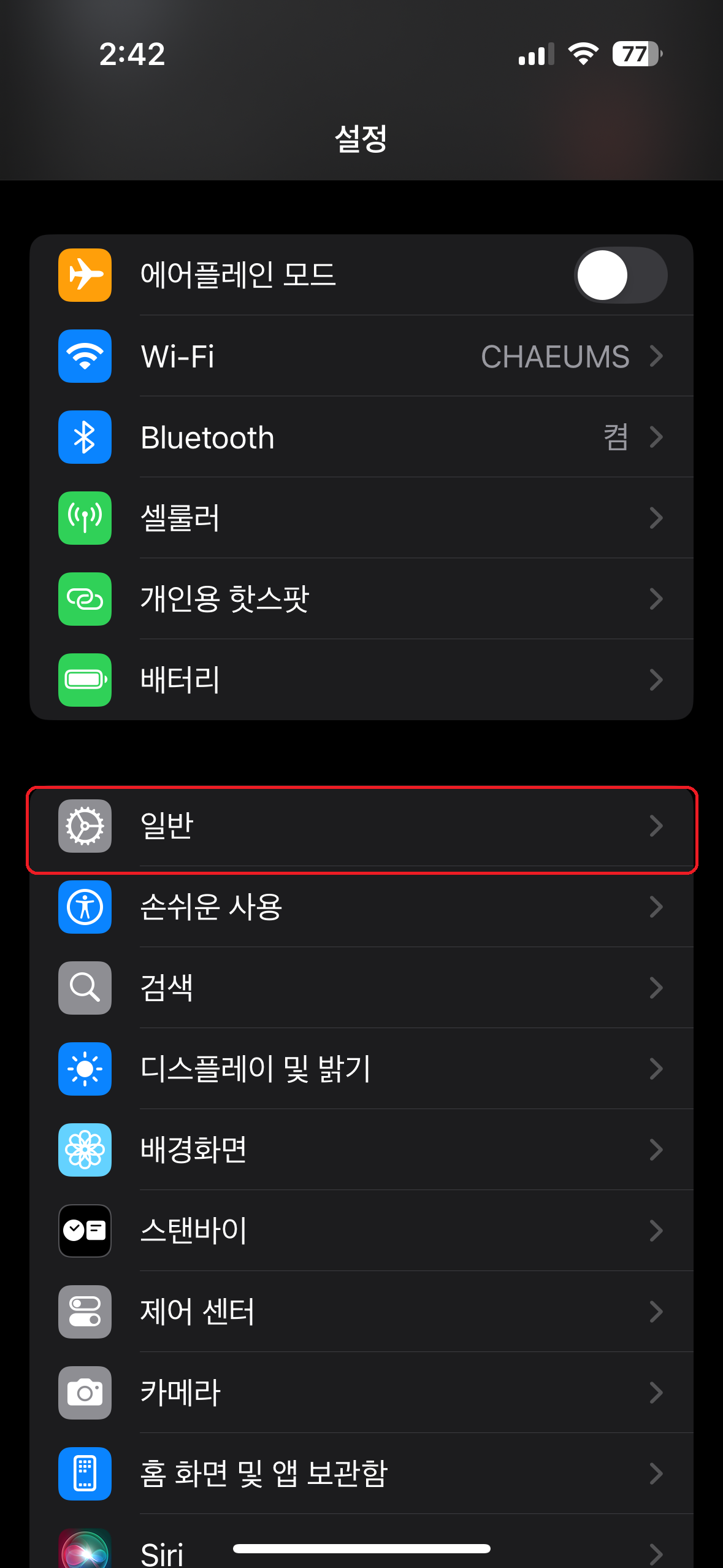 3. "일반" 클릭