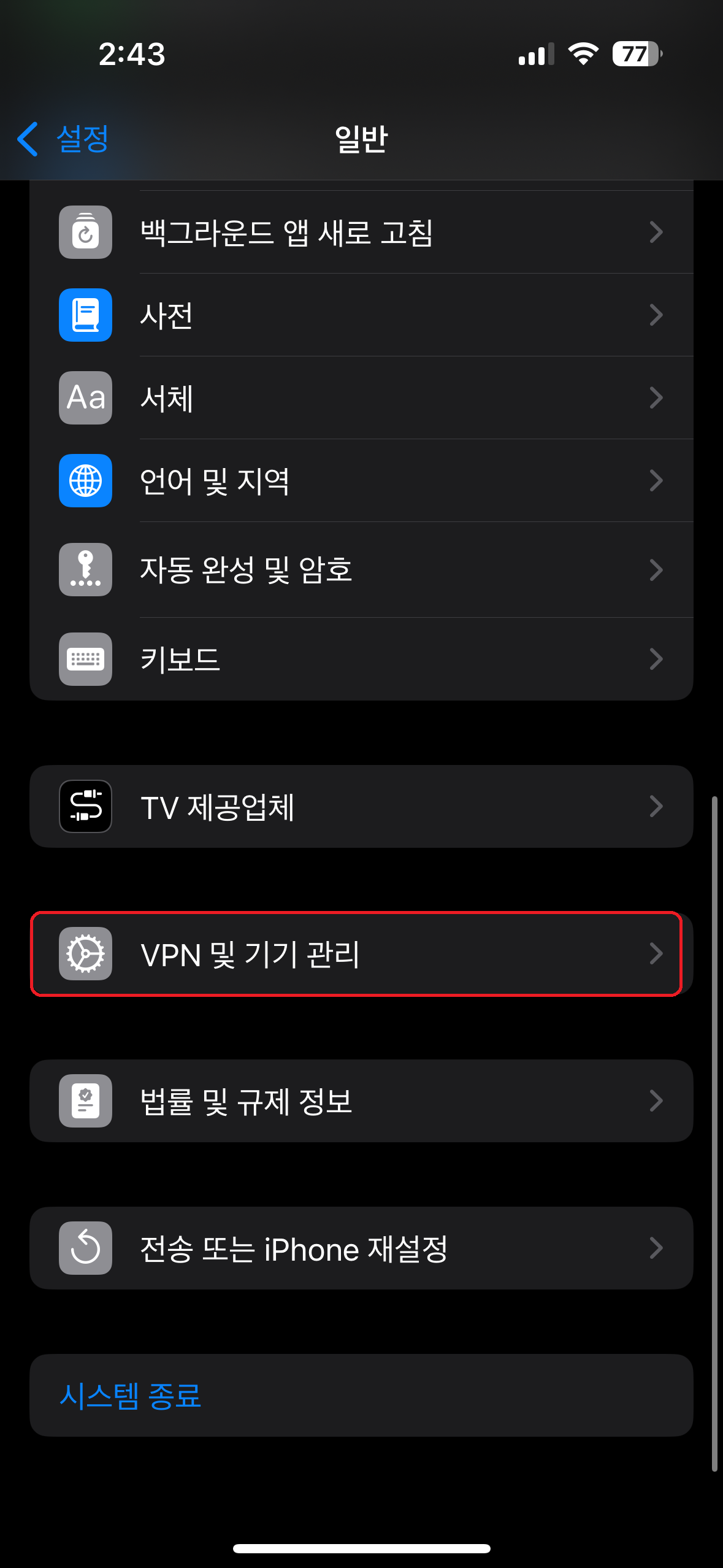 4. "VPN 및 기기관리" 클릭